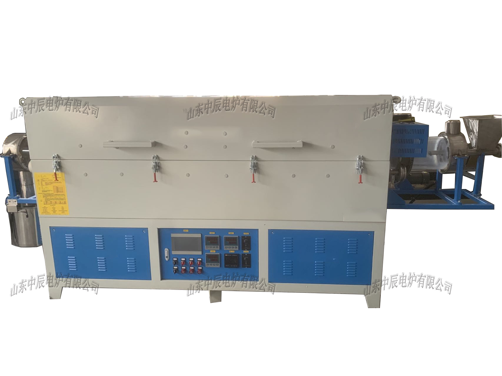 溫度可控式電加熱回轉爐 ,主要用于催化劑、氧化鋅、硅膠、化工粉體、化工顆粒、磨料、鋰電材料等粉體材料的動態(tài)烘干與燒結,具有一定產品質量高等優(yōu)點。通過加熱爐加熱旋轉筒壁加熱物料,物料在滾筒內被翻料外部敲擊不斷揚起加熱,加熱爐爐體保溫材料一般選用輕質耐火保溫磚或全纖維結構,可選擇上下加熱,四周加等加熱方式,加熱元件更換方便、簡單等優(yōu)點。